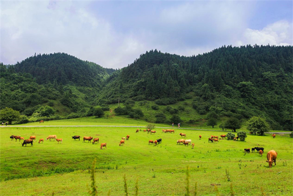 踏上草地的那一刻就懂了:鞋底碾過青草的沙沙聲,比任何白噪音都治愈;牛羊從身邊晃過,甩著尾巴像在說“別急,慢慢走”;山風(fēng)卷著草木香撲過來,所有煩惱早被吹到云后面去了。