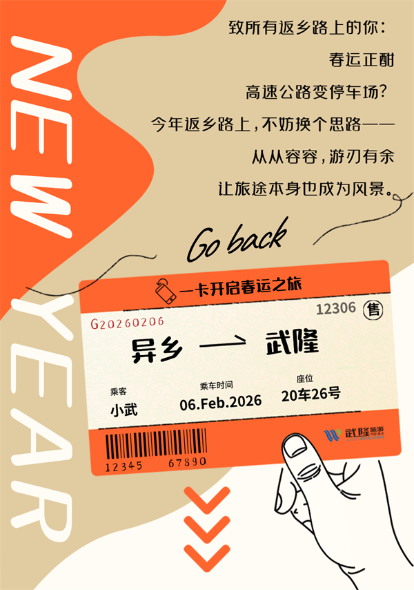 這個春運,拒絕無聊堵車!155元玩遍世界遺產(chǎn)地,喀斯特奇觀、高山峽谷、叢林探險…再加上春節(jié)限定的“武福臨門”系列活動,武隆的春節(jié),等你來撒野!立即購卡,開啟你的“神仙級”春運之旅!