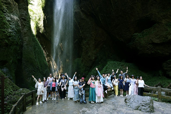 沿著棧道深入這條長達2公里的地縫峽谷,瀑布如銀河傾瀉,陽光從縫頂灑落,藤蔓垂懸,仿佛進入了一個與世隔絕的秘境。