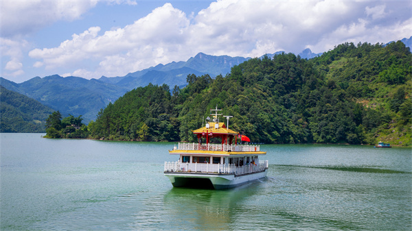 乘船漫游碧綠如玉的芙蓉江,兩岸青山倒映水中,奇峰異石栩栩如生,每一幀都如詩如畫。