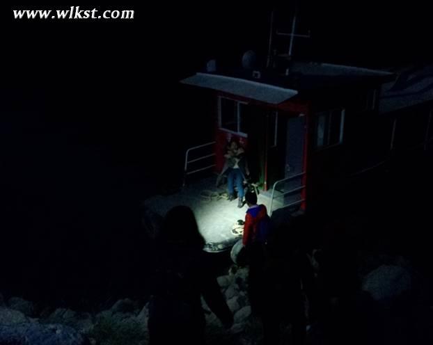 不過好運并沒有拋下我們,正當大家都不知道怎么辦的時候,土坎三姐的電話來了(隊里流傳了一句話:到土坎,找三姐),后來才聽說她在從涪陵回來的路上看到了我們,后來放心不下,才打來了電話。三姐動用了她在土坎強大的關系網(wǎng),讓渡船師傅開著船來把我們接回了土坎(據(jù)說收班時間以后渡船是不能再營業(yè)的,但是我們一致認為,這不是營業(yè),這是在救援,不但不能怪師傅,還應該表揚)。在上船的那一刻,大家都好激動,一是為終于脫離險境,二是為有這么偉大的三姐,三是為有這么大的船來接我們。也是因為有我們的三姐,才沒有讓我們上次日新聞頭條,萬幸萬幸!